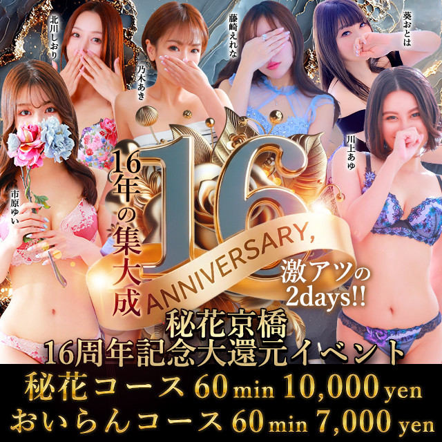 秘花京橋店は大阪京橋の20代~40代の若妻・人妻専門ホテルヘルス店。在籍女性数も多くて厳選した若妻・人妻のみを採用!美麗な人妻と内緒の激エロプレイができます。心ゆくまでリアルな癒しのプレイが可能。20代~30代の若妻の秘花コース、30代~40代の人妻おいらんコース、